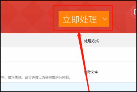 5、检测完成,点击“立即处理”按钮,上面的面板显示红色,红色表示危险。