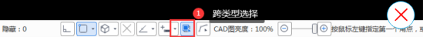 首先,选择跨类型选择按钮,这样可以把所有专业的图元一次性选中。
