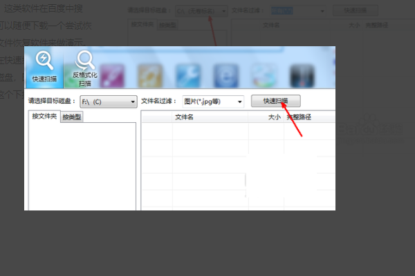 4、现在已经设置好了恢复的参数,现在点击快速扫描这个按钮,即可以开始查找以前删除的文件了。