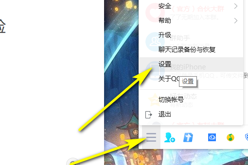 1、首先登录QQ,然后打开QQ版面左下角的“系统设置”。