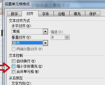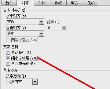 3、然后对齐页面中,勾选“缩小字体填充”选项,如下图所示。