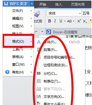 3、在下拉菜单里我们可以看到“格式”这一选项,而在格式这一下拉菜单中又有一个子菜单出现