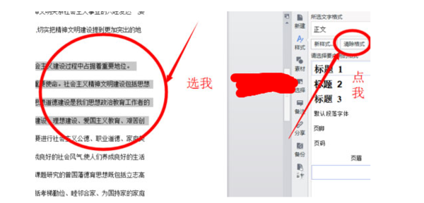 6、然后将鼠标移动到正文上,点击选择要清除格式的文字,选中之后点击清除格式即可,这样就可以达到目的了