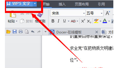 1、首先打开自己已经复制粘贴好的word文档,然后将鼠标移动到文档的左上角WPS文字处
