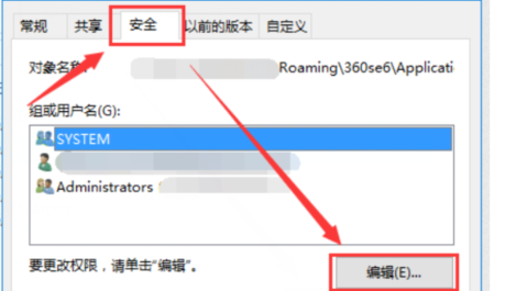 4、进入属性界面,然后点击安全,切换到安全页,点击下面的编辑。
