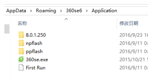 2、打开后会显示显示的是360安全浏览器的Application文件夹,我们要做的就是设置这个文件夹的权限,这样就可以控制它的自动更新。