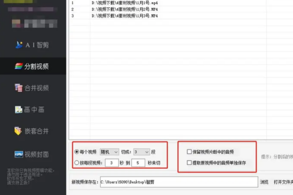 4、完成后来选择一下分割的方式,这里支持将视频按段落或者按时长进行切割,也是自定义选择的,最后就是重头戏了。