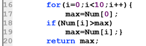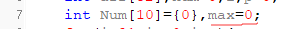 第17行有问题,你每次循环都把max赋值为Num[0],按照你的代码来,输入13时,Num[0]的值为0,所以max初始值总是0,而且Num[9]也是0,所以循环到最后一次的时候,整个过程是:
