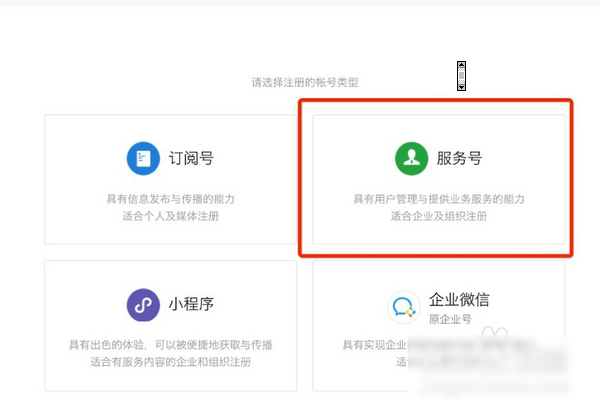 2、在该页面点击注册微信服务号并认证,进入下一页面