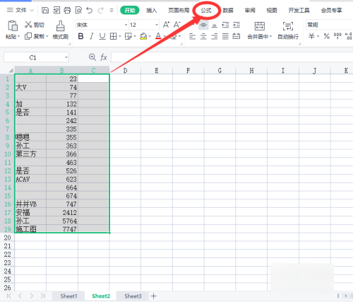 2、然后在【excel】电子表格菜单栏中选择【公式】。