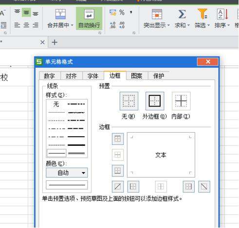 1、打开EXCEL表,选定需要制作表格的范围,点击鼠标右键菜单“设置单元格格式”。点击边框,然后选择“外边框”“内部”图标。