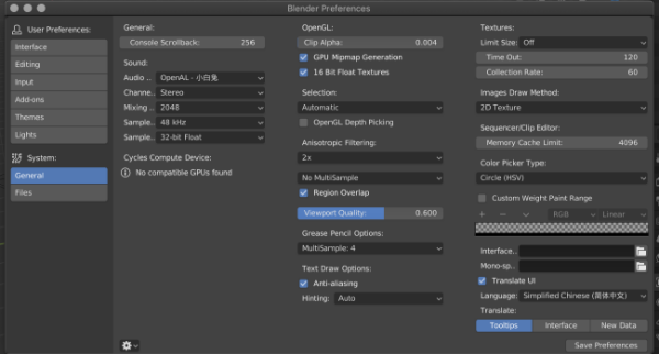 顺带一提,blender官网的提议是:“建议只勾选Tooltips,鼠标悬停的帮助为中文,按键仍为英文,方便学习”