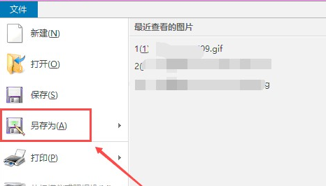 2、然后我们点击打开画图工具文件中的“另存为”。