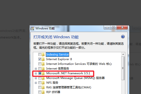 5、打开或关闭windows功能界面,这里可以看到.NET Framework版本。