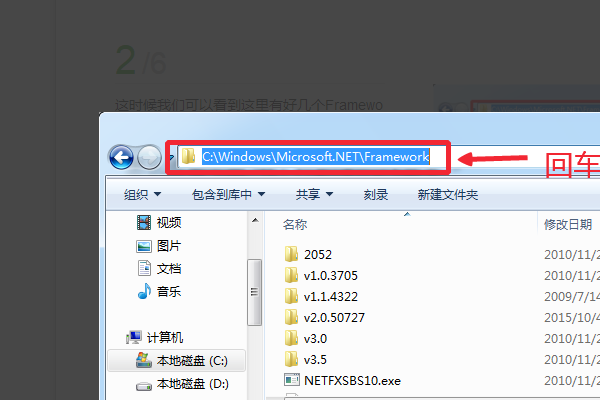 1、首先打开计算机,然后进入计算机窗口,然后地址栏中直接输入地址,C:\Windows\Microsoft.NET\Framework,然后回车,进行查看。