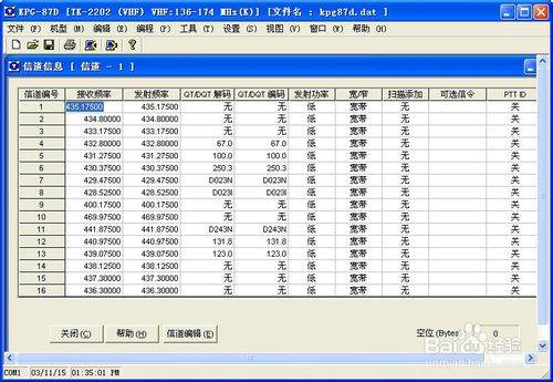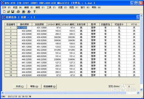 点击常用工具栏上的“保存”命令按钮,保存目标对讲机的所有信道信息,其文件名我们命名为“目标对讲频率.dat”,如下图