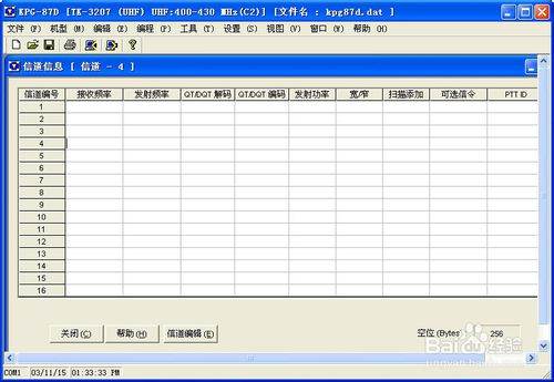 1、读频。拔掉668对讲机,把要进行调频的380对讲机连接上。依次点开写频软件的“编程”→“从对讲机读取数据(R)”,打开“从对讲机读取数据”对话框,点击“确定”命令按钮,读取到380对讲机各频道数据,我们看到两部对讲机的各频道的参数不一致,如下图