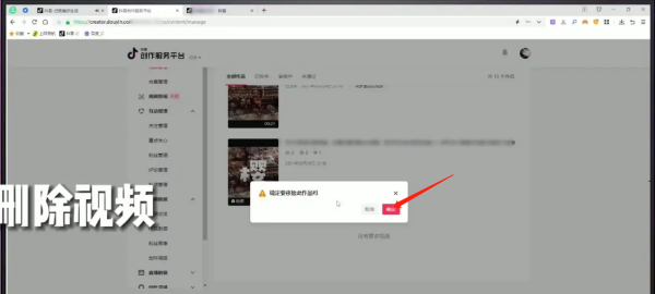 3、删除视频,下拉找到要删除的私密作品,点击视频右边的删除作品,再点击确定即可。