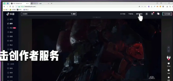 1、点击创作者服务,抖音电脑端需先进入主界面,点击右上角的创作者服务,进入创作服务平台。