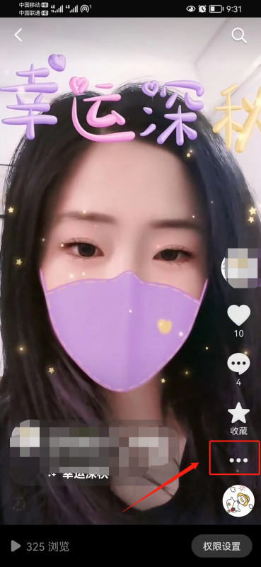 3、进入私密作品播放页面,点击右下侧的三个白色小点;