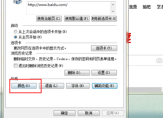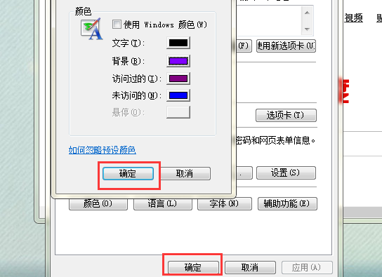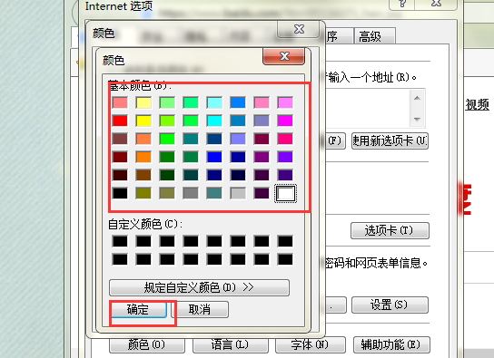 七、回到颜色窗口后,点击确定,并一路点击确定回到IE浏览器窗口内。