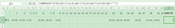 excel函数计算加班时间