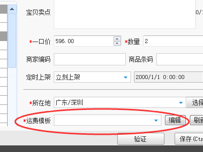 4、数据包处理好后,导入原csv到淘宝助理上传。一般数据包是完整的,只需要填好运费模板上传就可以了。填好运费模板后,点保存上传出现以下错误。