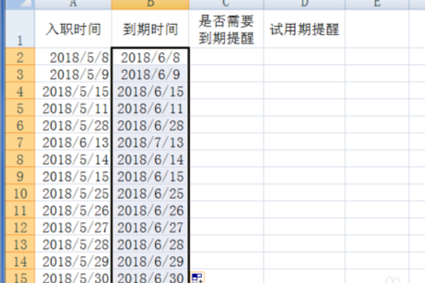 4、把计算出来了到期时间向下填充,这样就不用一个一个去输入了,还可以避免日期输入错误。