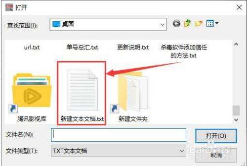 接着弹出第二个对话框,单击我们事先保存的那个TXT并打开