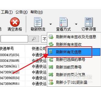 如果软件一次没有查询出所有物流,可选择软件上方的“刷新物流”