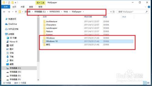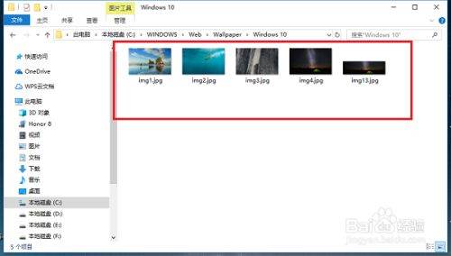 第二步我们打开Windows 10文件夹,可以看到桌面壁纸图片,如下图所示: