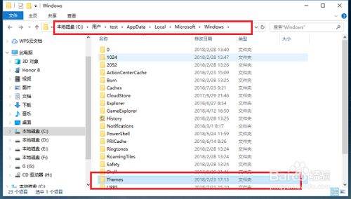 第五步如果我们想查看个人安装的壁纸,在“C:\Users(用户)\xx(当前用户名)\AppData\Local\Microsoft\Windows\Themes”路径下,如下图所示:
