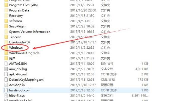 3、在C盘中,下拉找到Windows文件。