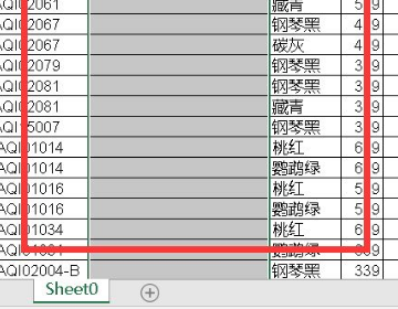 2、鼠标移动到A列,按下”CTRL“+方向键下键,快速移动鼠标到第一列表格的最下方。