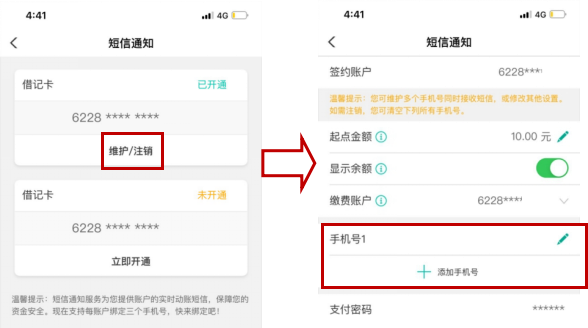 3.自助终端:在农行自助服务终端欢迎页面,点击“消息定制”可进行短信通知注销操作,具体请以机具实际功能显示为准。
