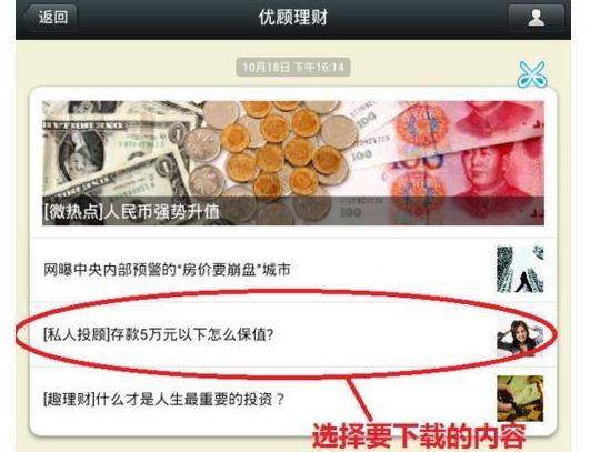2、进入订阅号后选择要下载的内容;