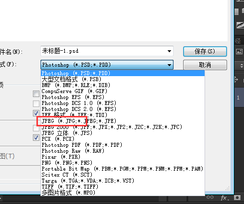 ps2021 另存为 没有jpeg格式选项怎么办?