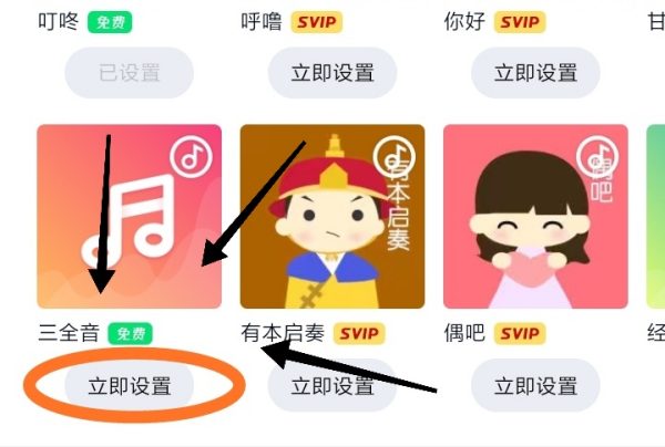 3.找到三全音铃声,点击立即设置即可。