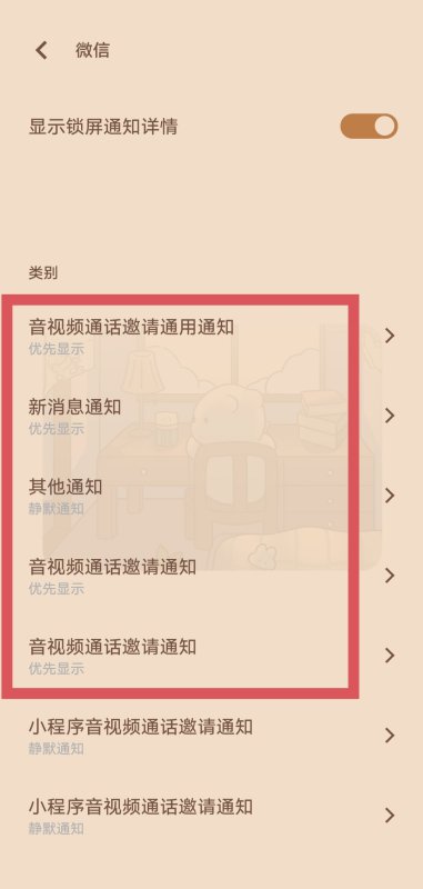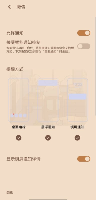 可以看到类别里有许多通知的设置,选择相应的点击进入。