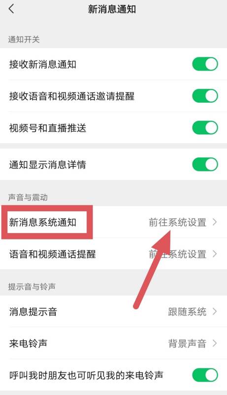 3、找到“新消息系统通知”,点击“前往系统设置”。