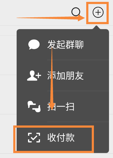 2.接着点击右上角的【+】号;出现一个列表,点击【收付款】。