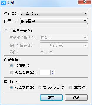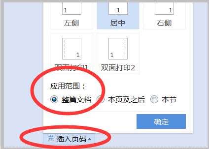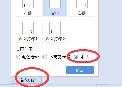 2、其次,单击“插入页码”选项,可以看到此时应用的页码的应用范围是“本节”,如下图所示,然后进入下一步。