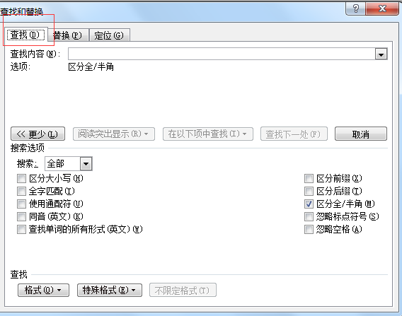 1、按住ctrl+h快捷键打开查找替换搜索框。选择查找按扭。