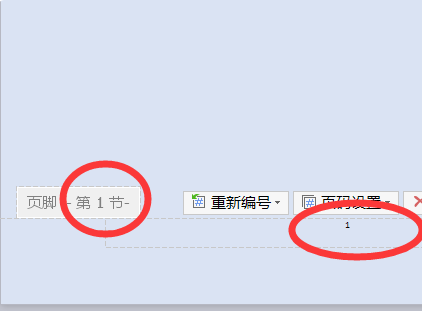 1、首先,双击添加了页码的页脚位置,以进入编辑页脚的区域。可以看到此时与页脚相对应的“第1节”,如下图所示,然后进入下一步。