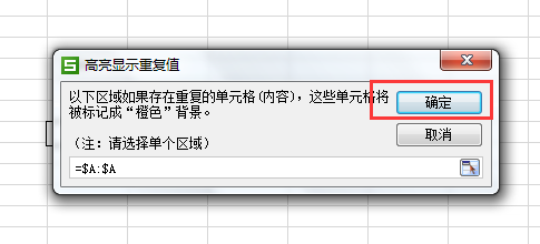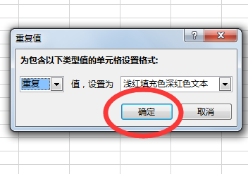 5、即可弹出重复值对话框,点击确定按钮。