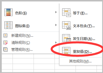4、然后在其下拉选项中点击“重复值”。
