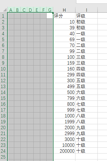 excel表格中如何根据评分的数值自动得出设定好的等级分类