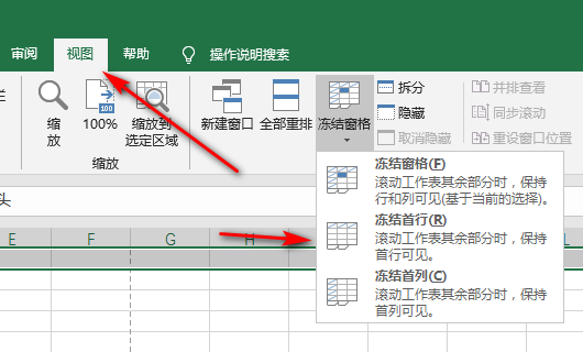 请问如何令一个excel表格在下拉时 第一行始终能显示?