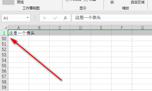 5、完成以上设置后,即可令一个excel表格在下拉时第一行始终能显示。