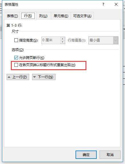 选中表格,右击——表格属性,打开后,选择“行”,选项里有个“在各页顶端以标题行形式重复出现“,把见面的勾去掉,保存即可。